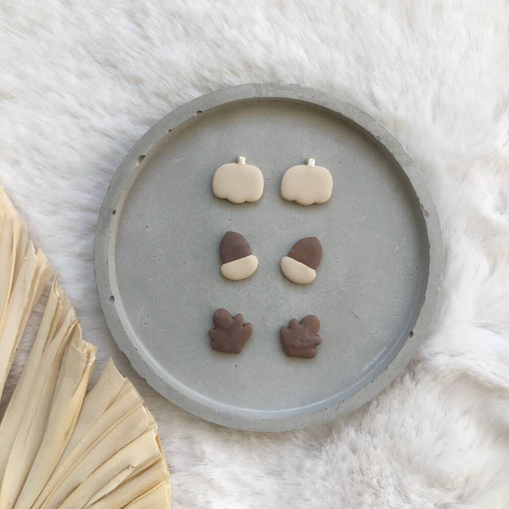 Autumnal Neutral Pumpkin Polymer Clay Earrings