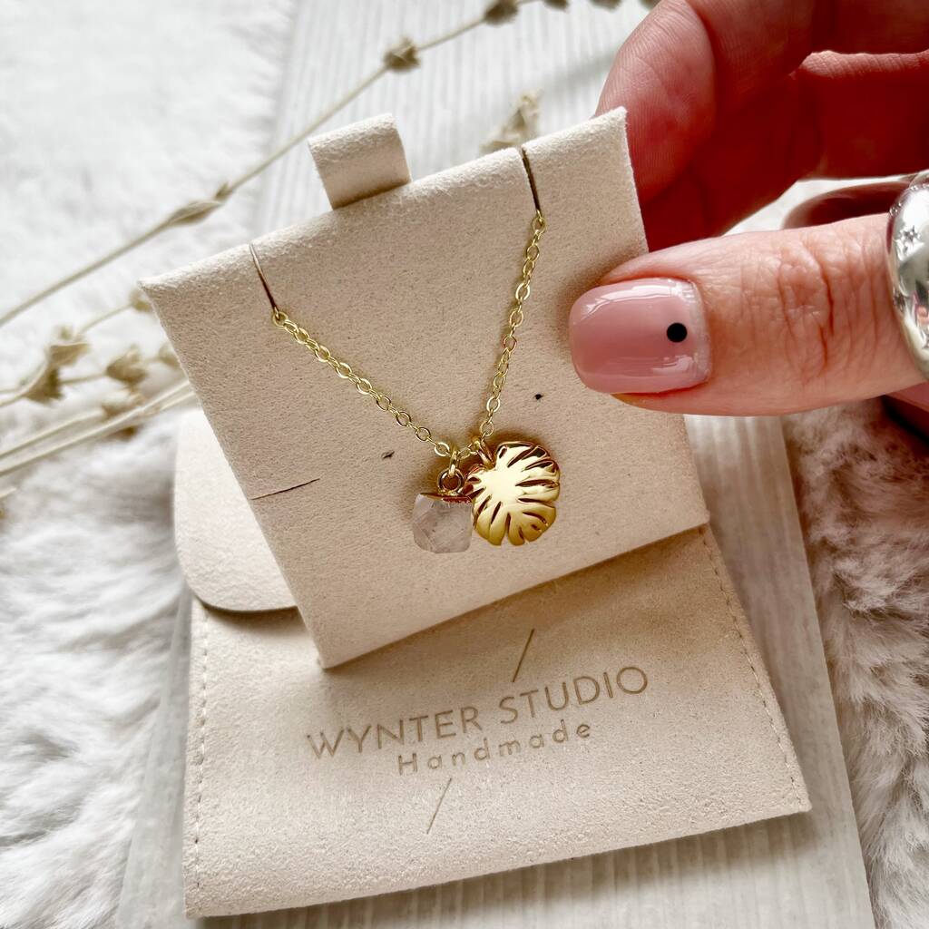 Monstera And Rose Quartz 18ct Gold Necklace