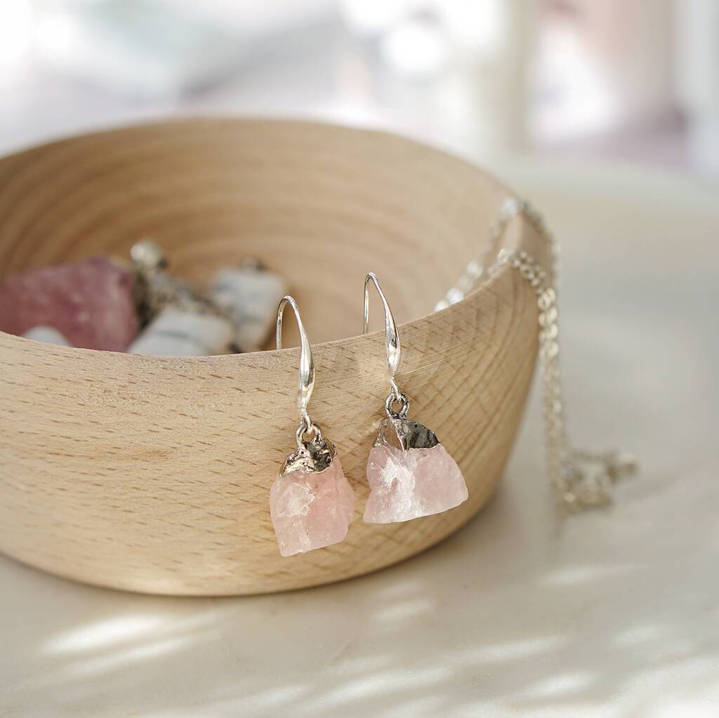 925 Sterling Silver Raw Cut Rose Quartz Rock Earrings