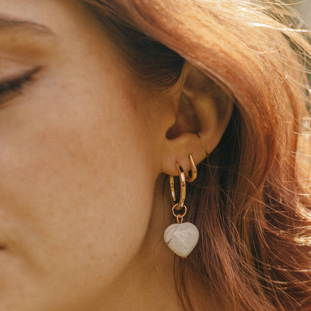 Gold Tone Chunky Hoop And Howlite Love Heart Earrings