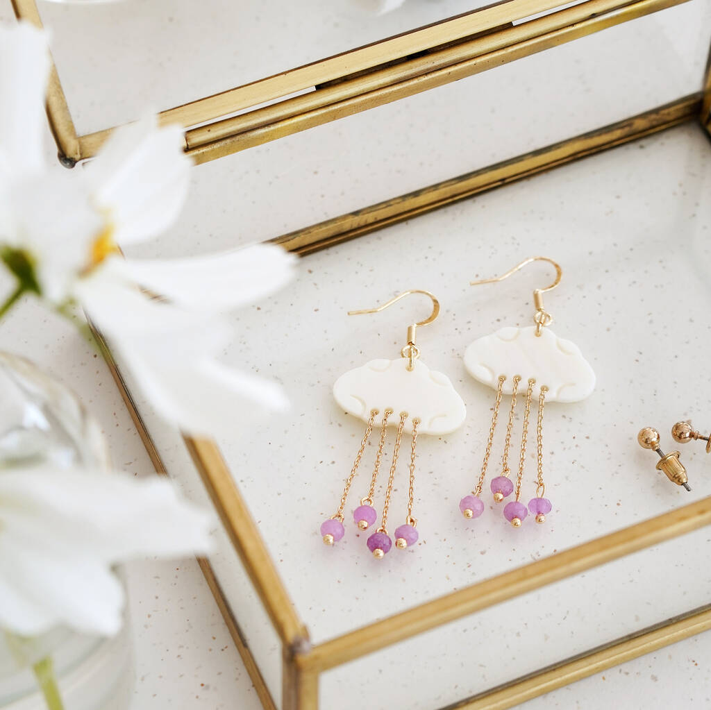 Gold Tone Pink Chalcedony Crystal Cloud Earrings