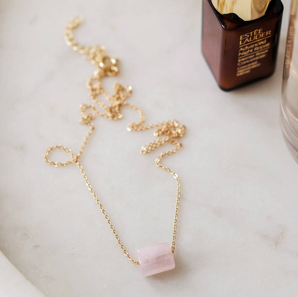 Gold Tone Rose Quartz Crystal Tube Necklace