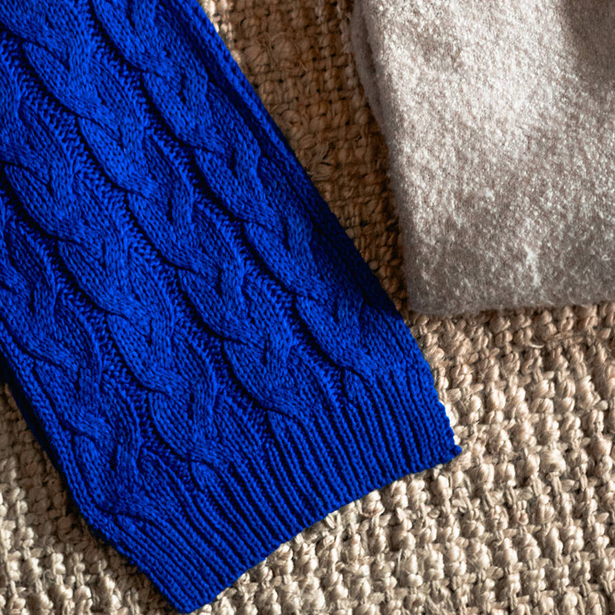Royal Blue Pom Pom Cable Knit Hat And Scarf Set
