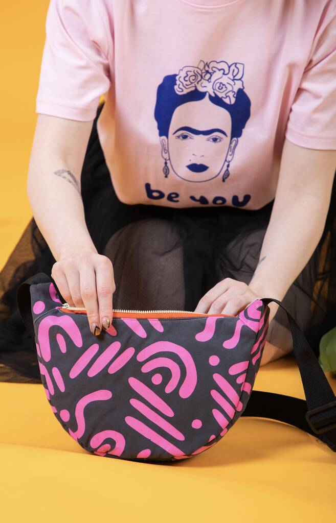 Abstract Pink And Grey Sling Bag Waxed Cotton Bag