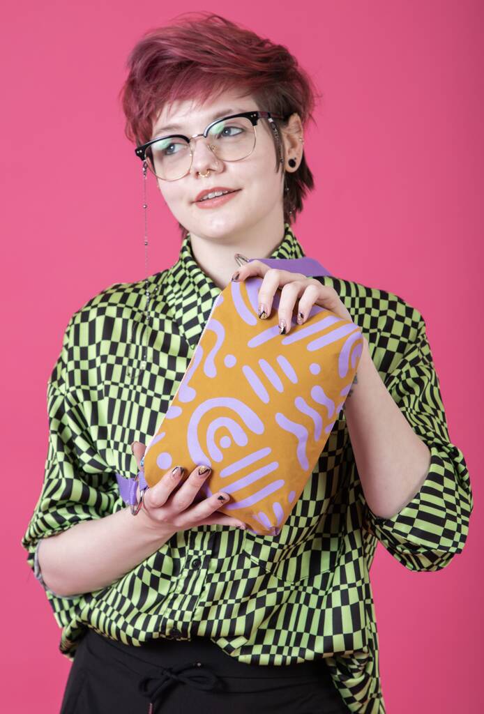 It features a fully lined, padded interior with contrasting handprinted fabric, and includes a small pocket for your phone and cards.Please note that the lining comes in different colours and prints depending on availability.