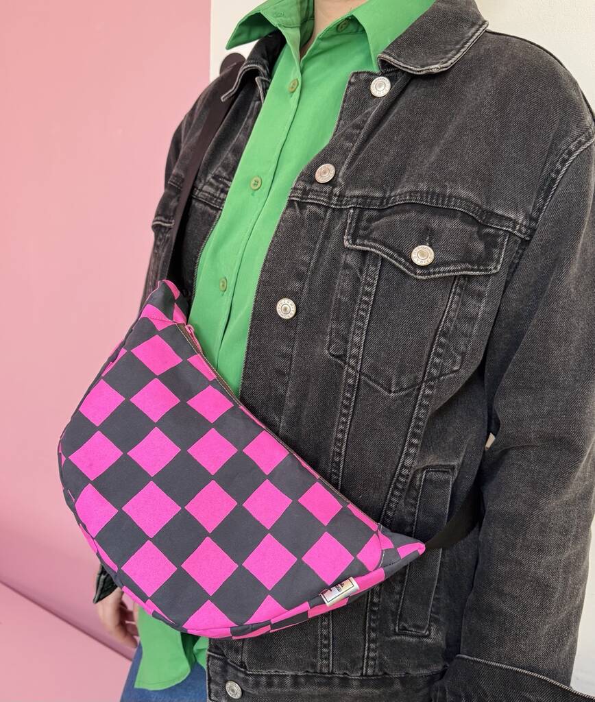 Checkered Pink And Grey Sling Bag Waxed Cotton Bag